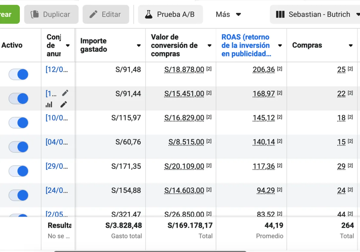E-commerce logró escalar su facturación a más de USD$50.000 manteniendo un rendimiento constante superior a 200 en varias campañas y un ROAS 44 en toda su cuenta.